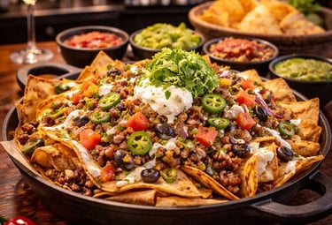 Knusprige Nachos, überbacken mit geschmolzenem Käse und würzigen Toppings.