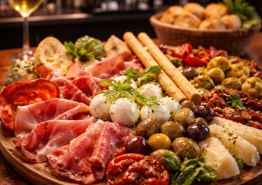 Eine erlesene Auswahl an italienischen Wurstwaren, Käsesorten und Antipasti – kalt serviert.